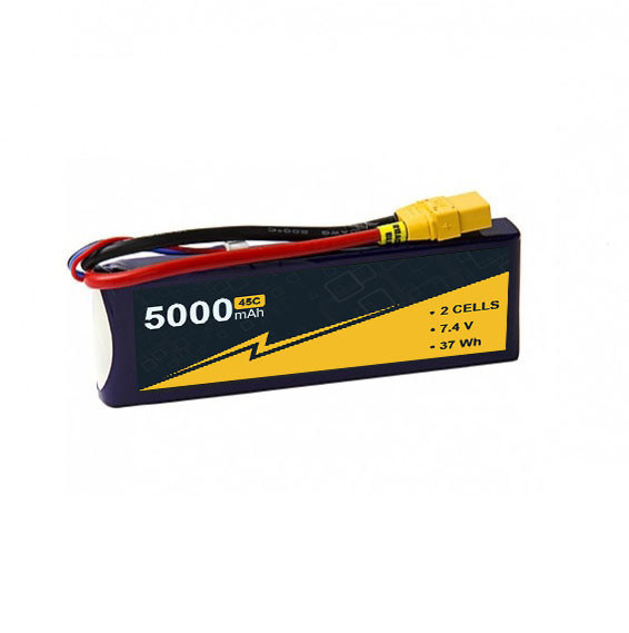7.4V 45 ~ 90C 5000mAh 2S Batería Lipo con w / XT-90 para la batería de avión RC