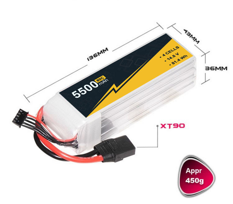 5500mAh 14.8V 4s1P Baterías Lipo 80C para FPV Batería Lipo